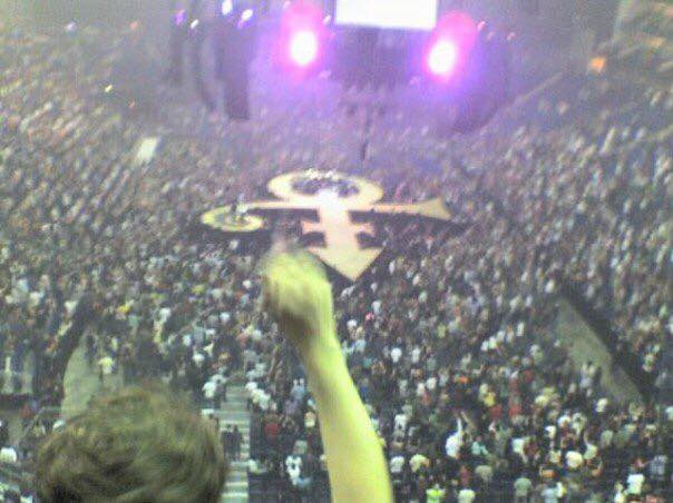 P.S. Below is a picture from the concert, and Prince is in that little curlicue of his symbol. Cameras weren’t permitted, so I tried to be sneaky by using my 2007 Motorola cell phone… which is the equivalent of trying to take a picture with a potato.