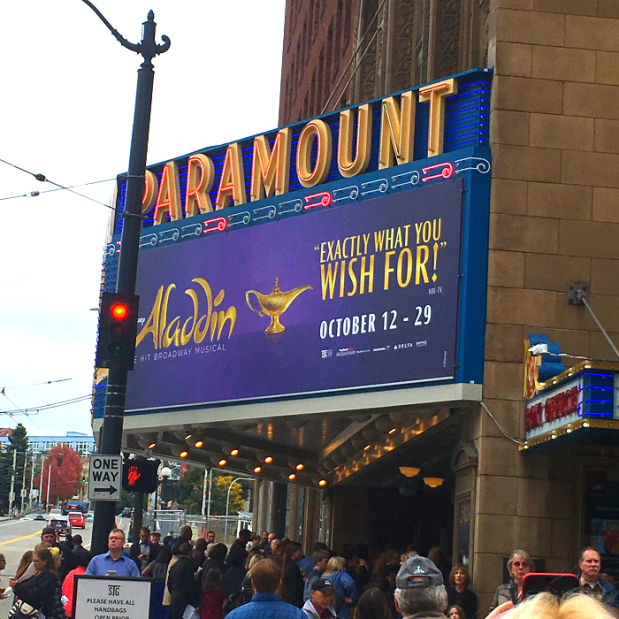 Although New York City is the home of Broadway, I love how top productions manage to find their way to the Pacific Northwest – and at a fraction of the price. I haven’t been to the Paramount Theatre since I was in high school and saw the Radio City Christmas Spectacular with the Rockettes (I also stole some of their choreography for my drill team’s State competition). So it was great to be back in the beautiful vicinity for Aladdin, which I’ve been dying to see for years.