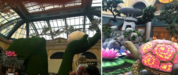 The rest of the afternoon was spent wandering around the strip, starting with the gardens at the Bellagio. I loved the tranquil sound of the water fountain and koi pond, and the Asian-inspired floral designs.