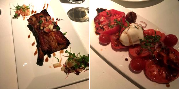 For Auntie Claire’s birthday celebration, Bekki treated us all to dinner at Chef Emeril Lagasse’s Delmonico Steakhouse (also located inside the Venetian). I had the heirloom tomato and burrata salad and the lobster bisque (both were delicious), and we ordered the bone-in bacon to share as a starter. I didn’t know “bone-in bacon” existed, but holy crap… I’m glad it does.